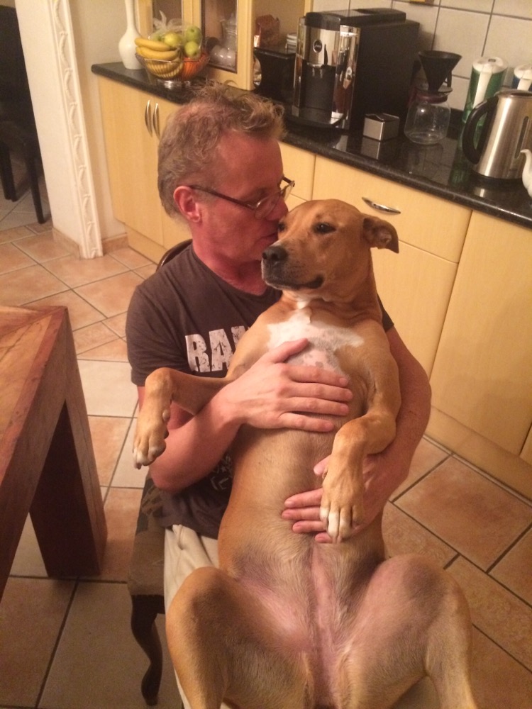 Er hat auch zwei Kampfhunde (Chicka und Leika), die sich aber als permanente Kampfkuschler entpuppten und aufs Wort gehorchen.