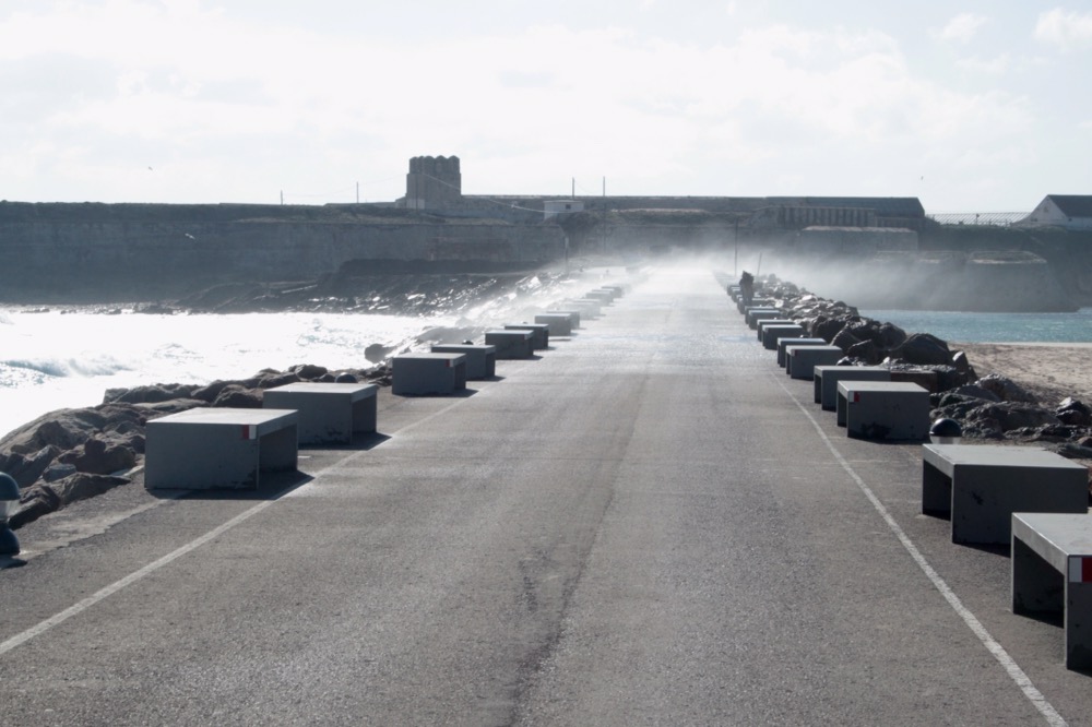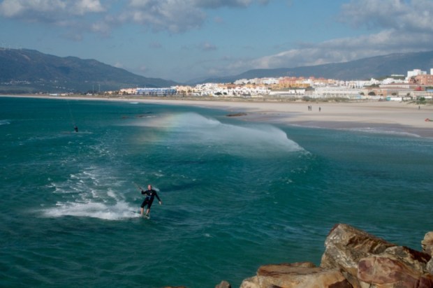 Vor Tarifa ist eine kleine Insel, die man über einen Wall erreichen kann. Durch die starken Winde und den Seegang kommt man aber keineswegs trockenen Fußes dort drüben an.