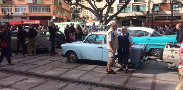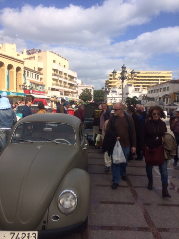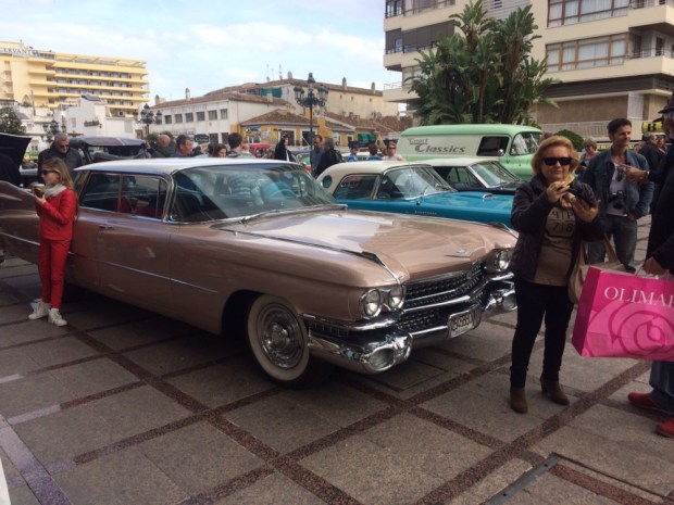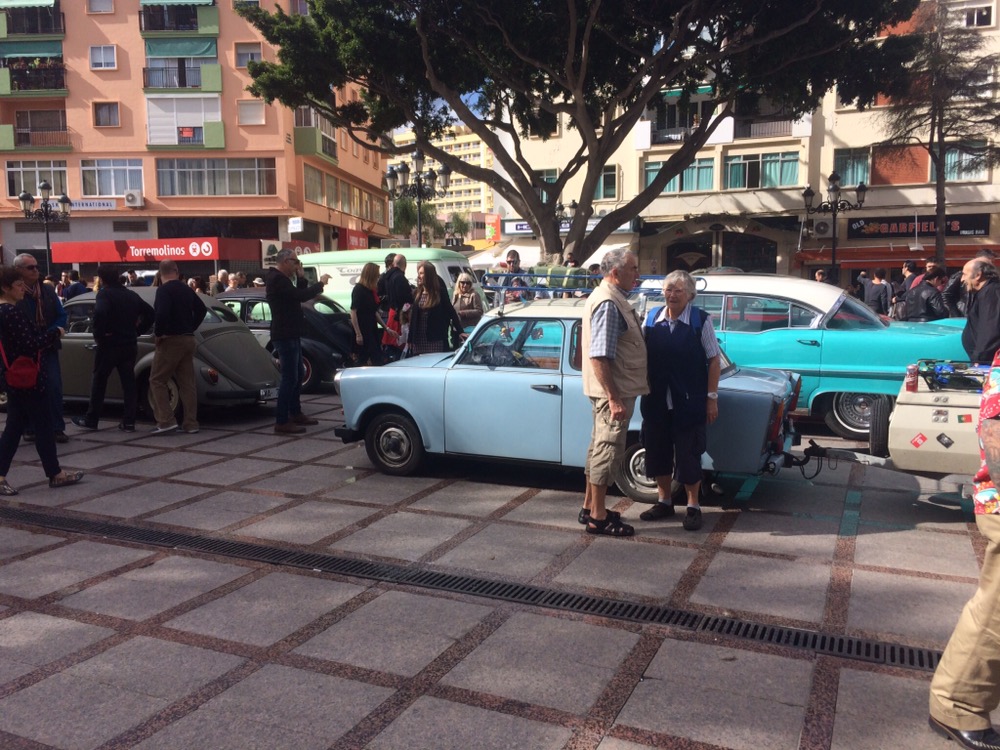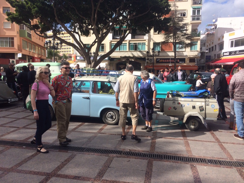 Das Festival mit Namen „Rockin Race Jamboree“ kostete für das Wochenende 70€, zu viel für mich. Glücklicherweise spielten einige Bands auch kostenlos in der Innenstadt von Torremolinos. Dort waren auch einige US-Cars ausgestellt und ich ließ es mir nicht nehmen, mich ganz frech einfach dazu zu stellen. Im nu waren die US-Cars uninteressant und ich war umringt und musste mit Händen und Füßen zig Fragen beantworten.