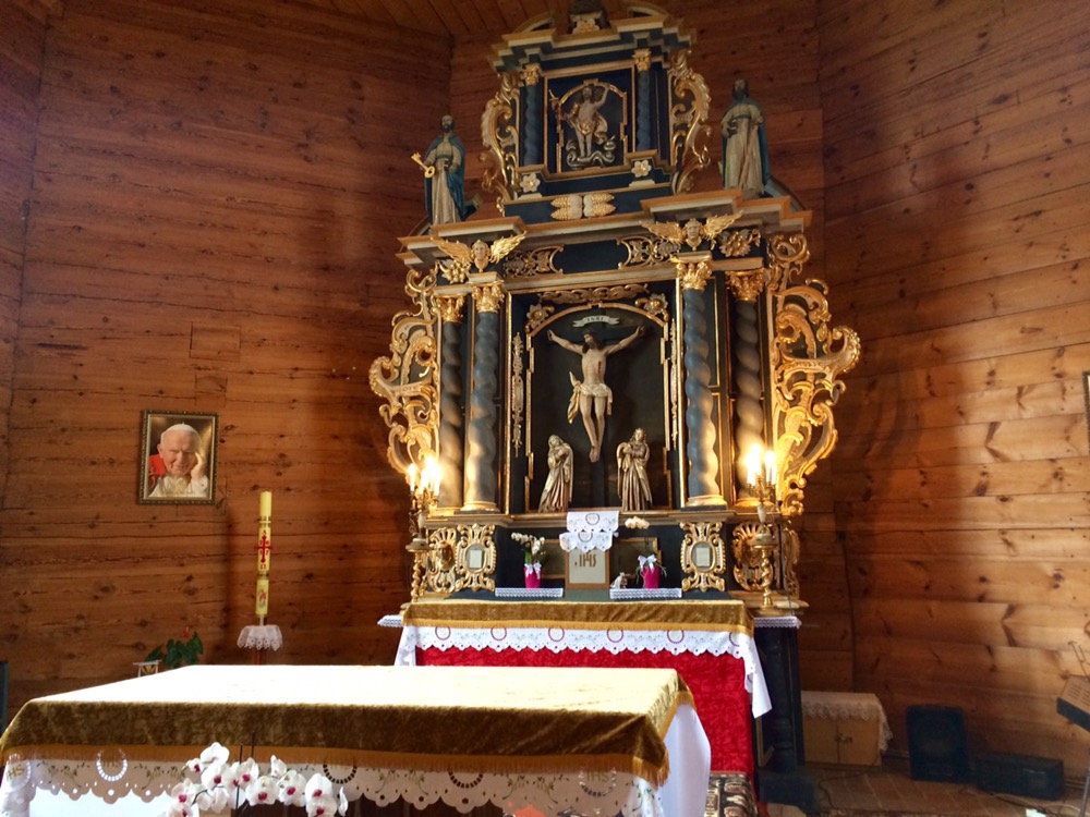 In der Nähe von Prostken steht eine Kirche, die komplett aus Holz und ohne Nägel gebaut wurde. Ein bisschen erinnert sie mich an einen Gemeindesaal aus der Vikingerzeit. Urgemütlich!