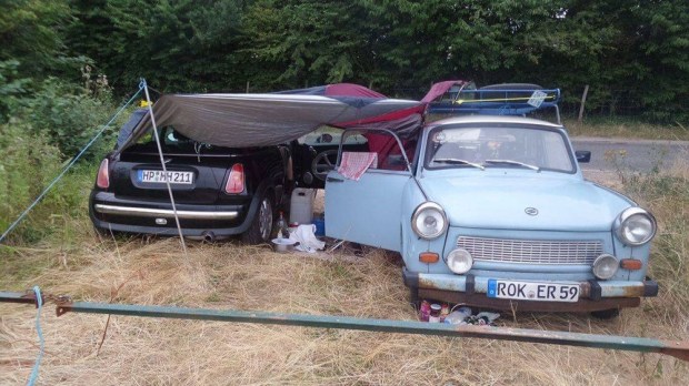 Doch zum Anfang. Cori wachte auf, stieg aus ihrem Mini und schloss die Heckklappe. (Sie schläft auf einer Luftmatratze in ihrem Kofferraum und über einen Seilzug kann sie manuell die Heckklappe öffnen) Damit war die Katastrophe perfekt, denn der Schlüssel lag noch drinnen. Einen vorbeikommenden älteren Mann und seine Frau fragten wir dann ob sie nicht eine Nummer von einem Schlüsseldienst hätten oder so. Ich fragte meinen Kumpel Jan, der auch gerade in England ist, ob er die Nummer vom ADAC habe, aber der ADAC konnte uns auch nicht weiterhelfen.
